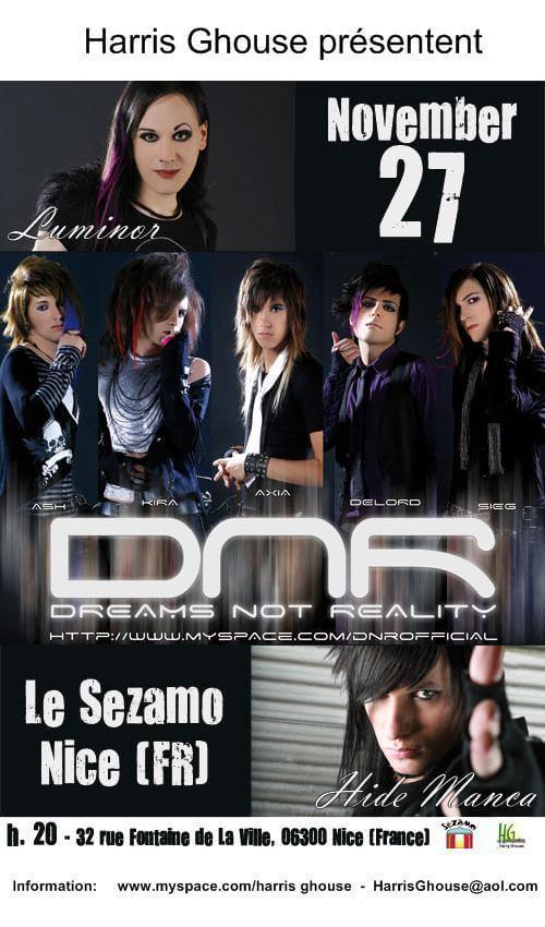 DNR flyer for their show in France in 2009 featuring ex. Cinema Bizarre keyboardist and vocalist Luminor -